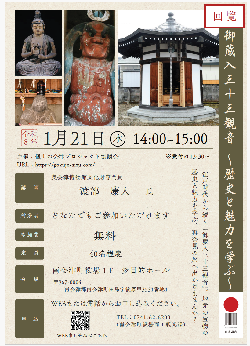 日本遺産一般講演会「御蔵入三十三観音~歴史と魅力を学ぶ~」 in 南会津町 が開催されます!